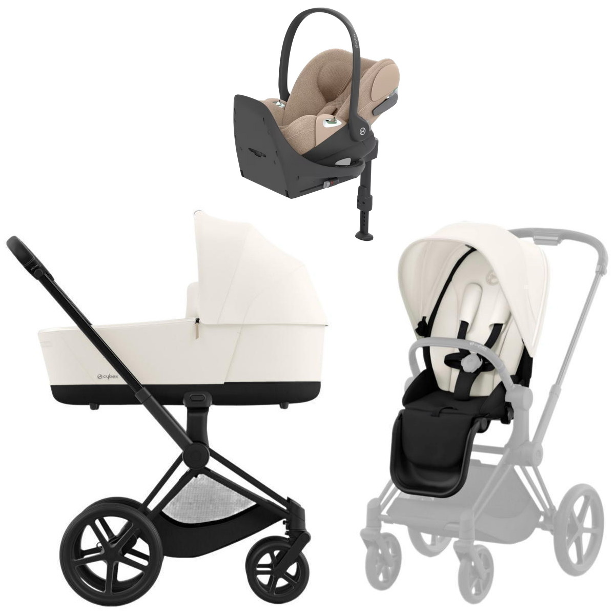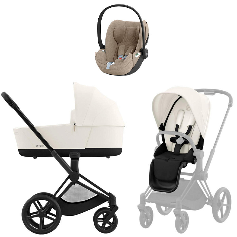 Коляска Cybex Priam IV Matt Black complete Cloud T Cozy Beige Plus Base T 3 в 1 Off White