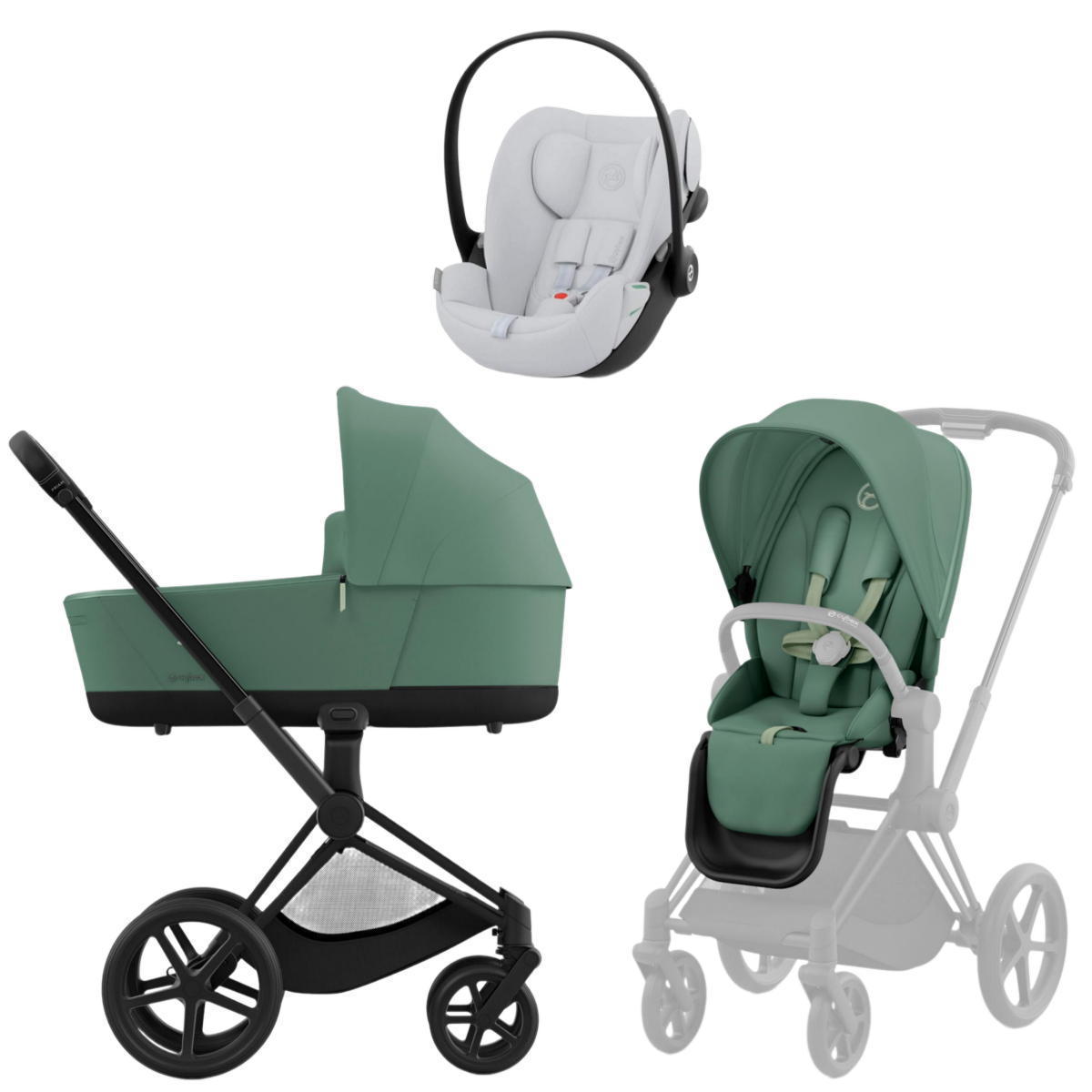 Коляска Cybex Priam IV Matt Black complete и автокресло Cloud G i-Size Fog Grey 3 в 1 Leaf Green