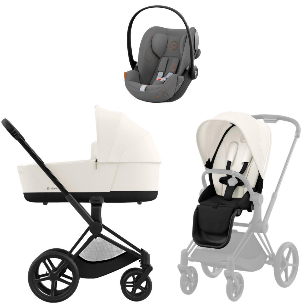 Коляска Cybex Priam IV Matt Black complete и автокресло Cloud G i-Size Lava Grey 3 в 1 Off WhiteНет оценокХарактеристики