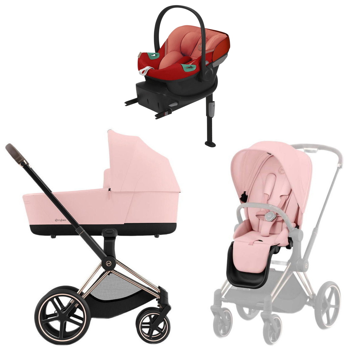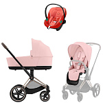 Коляска Cybex Priam IV Rosegold complete Aton S2 Hibiscus Red Base One 4 в 1 Peach PinkНет оценокХарактеристики
