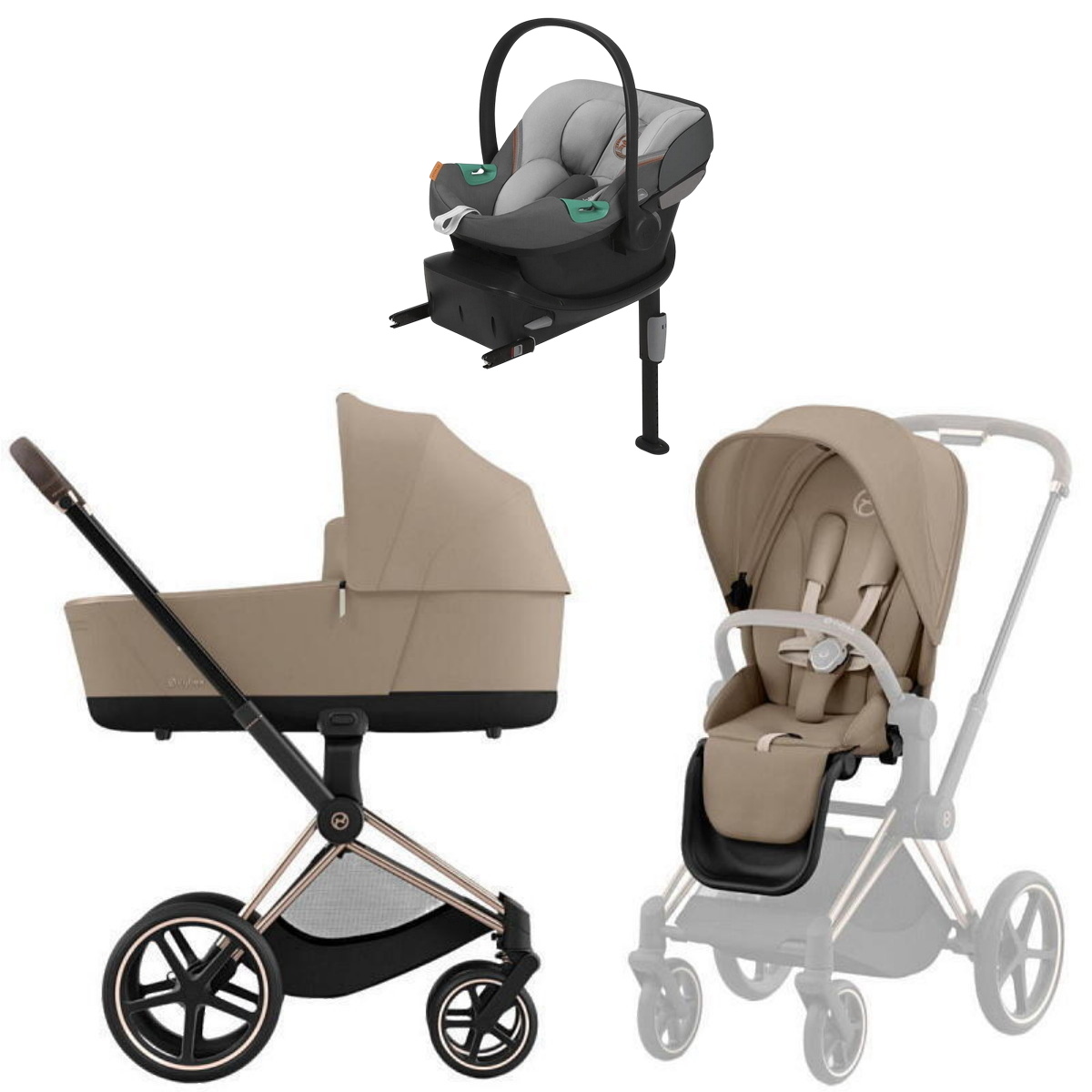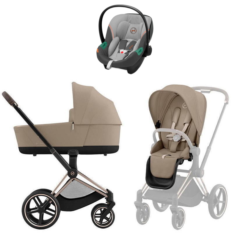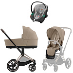Коляска Cybex Priam IV Rosegold complete Aton S2 Lava Grey Base One 4 в 1 Cozy Beige