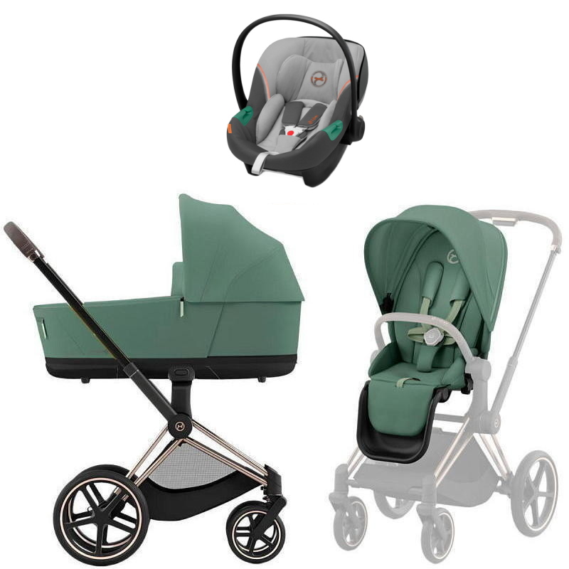 Коляска Cybex Priam IV Rosegold complete Aton S2 Lava Grey Base One 4 в 1 Leaf Green