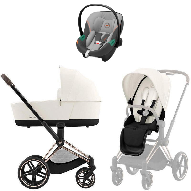 Коляска Cybex Priam IV Rosegold complete Aton S2 Lava Grey Base One 4 в 1 Off White