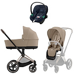 Коляска Cybex Priam IV Rosegold complete Aton S2 Ocean Blue Base One 4 в 1 Cozy Beige