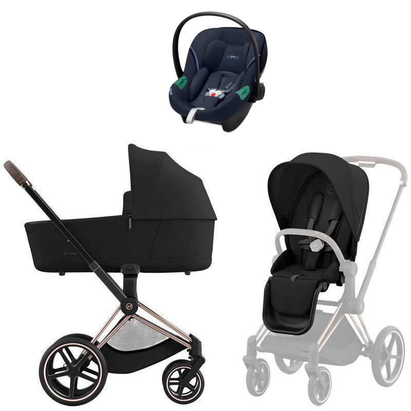Коляска Cybex Priam IV Rosegold complete Aton S2 Ocean Blue Base One 4 в 1 Sepia Black