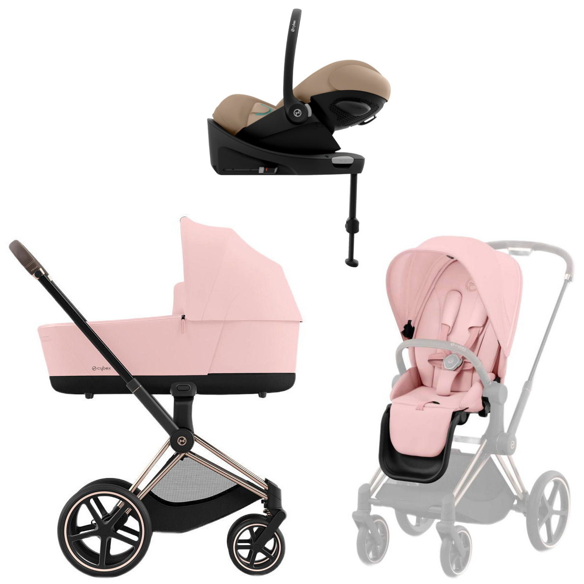 Коляска Cybex Priam IV Rosegold complete Cloud G Almond Beige Plus Base G 3 в 1 Peach Pink