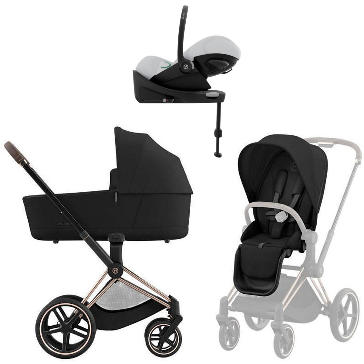 Коляска Cybex Priam IV Rosegold complete Cloud G Fog Grey Base G 3 в 1 Sepia Black