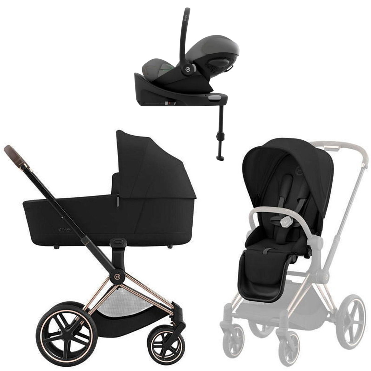 Коляска Cybex Priam IV Rosegold complete Cloud G Lava Grey Base G 3 в 1 Sepia BlackНет оценокХарактеристики