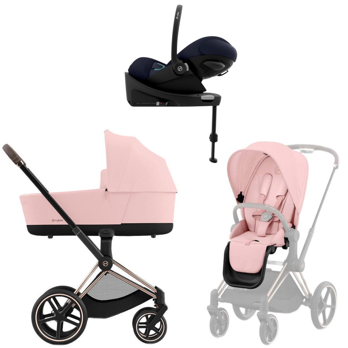 Коляска Cybex Priam IV Rosegold complete Cloud G Ocean Blue Plus Base G 3 в 1 Peach Pink