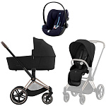 Коляска Cybex Priam IV Rosegold complete Cloud G Ocean Blue Plus Base G 3 в 1 Sepia Black