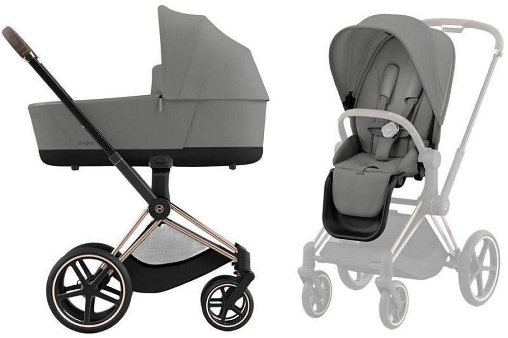 Коляска Cybex Priam IV Rosegold complete Cloud G Stone Grey Plus Base G 3 в 1 Mirage Grey