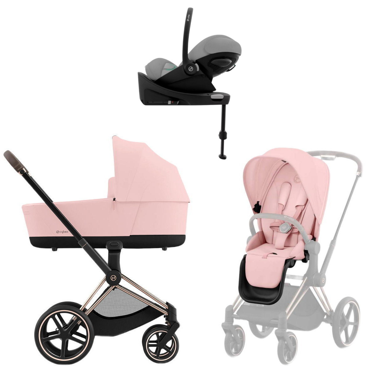 Коляска Cybex Priam IV Rosegold complete Cloud G Stone Grey Plus Base G 3 в 1 Peach PinkНет оценокХарактеристики