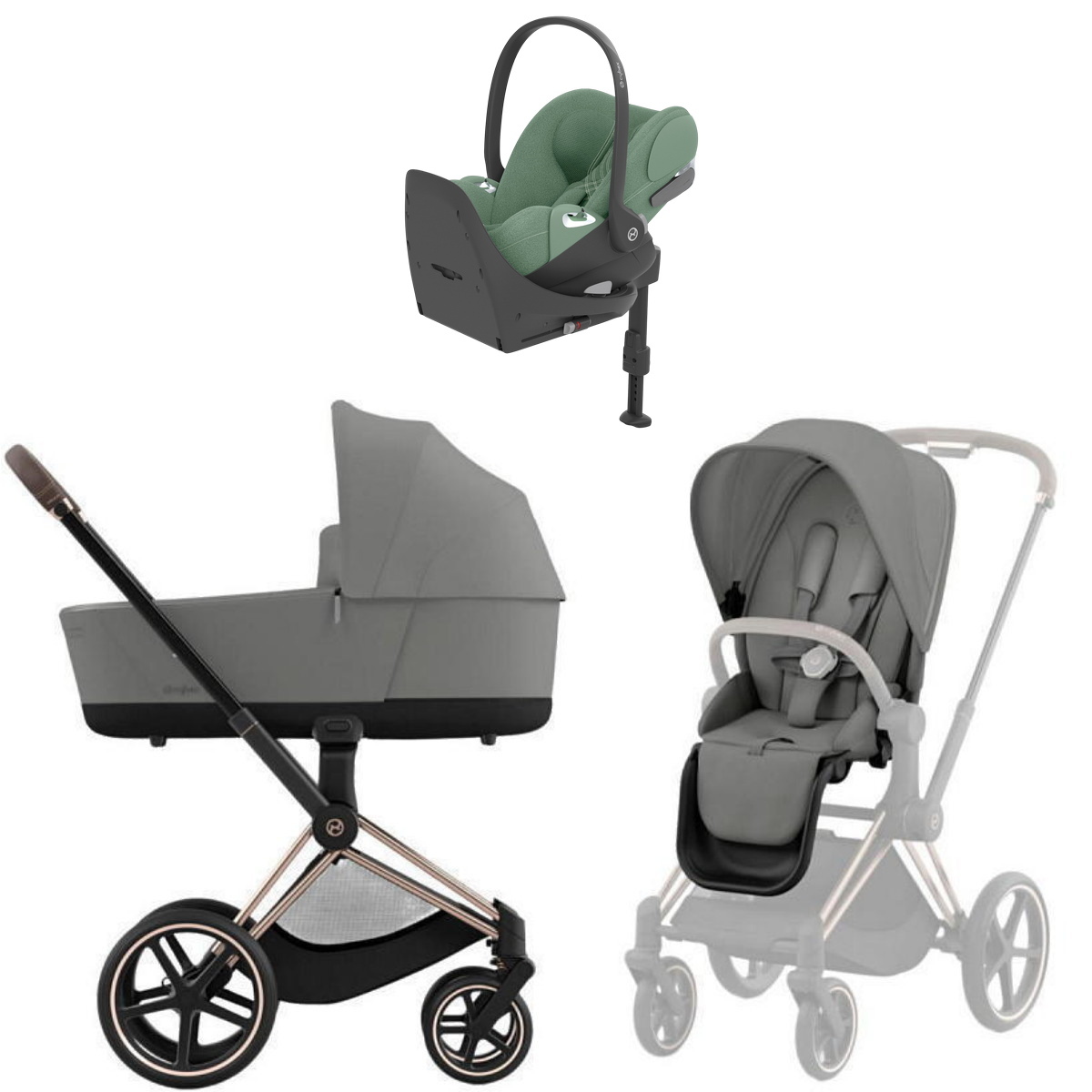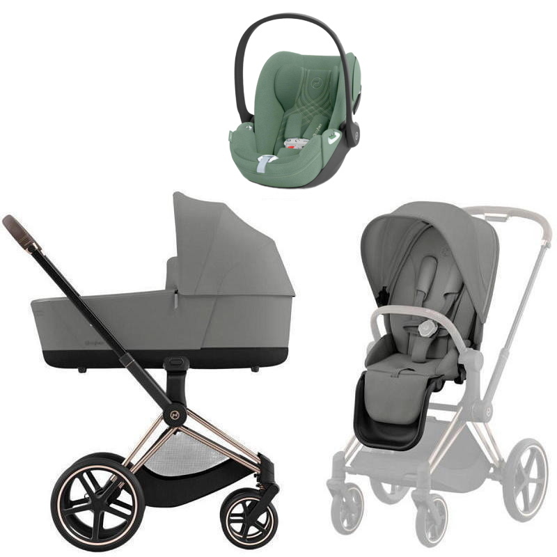 Коляска Cybex Priam IV Rosegold complete Cloud T Leaf Green Plus Base T 3 в 1 Mirage Grey