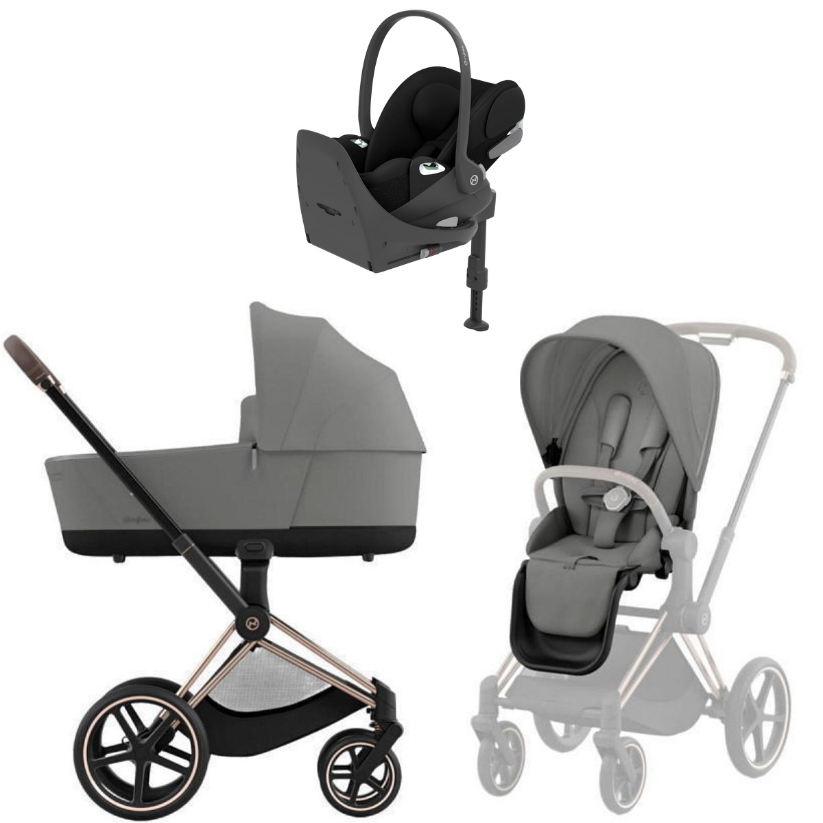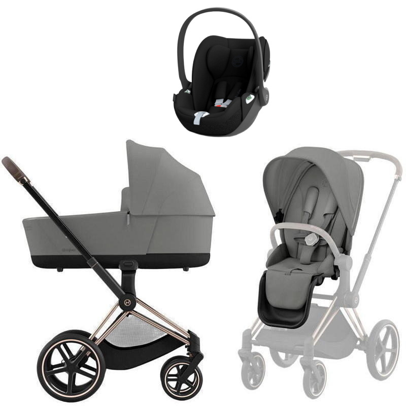 Коляска Cybex Priam IV Rosegold complete Cloud T Sepia Black Base T 3 в 1 Mirage Grey