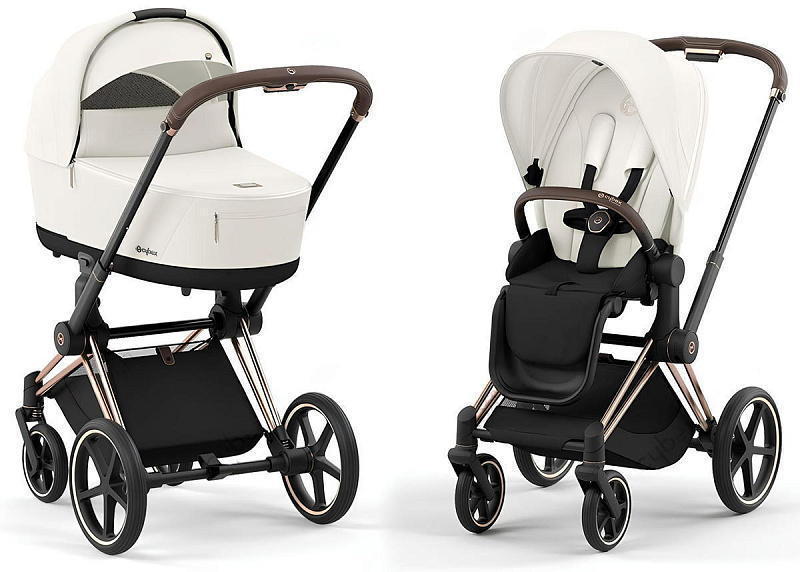 Cybex Priam IV 3 в 1 (Сайбекс Приам 4) является самым полным комплектом немецкой гибридной универсальной премиальной коляски, который удовлетворит все изысканные потребности с первых дней жизни вашего малыша до достижения им 4-летнего возраста. Данная модель коляски Priam IV имеет шасси модели в расцветке Rosegold (рама розовое золото, бампер и ручка в коричневом оттенке) и упакована в одну коробку, в комплекте также автокресло Cloud G i-Size Almond Beige Plus.