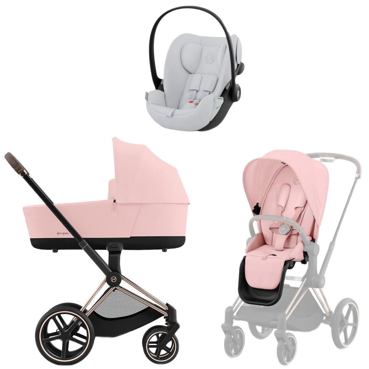 Коляска Cybex Priam IV Rosegold complete и автокресло Cloud G i-Size Fog Grey 3 в 1 Peach Pink