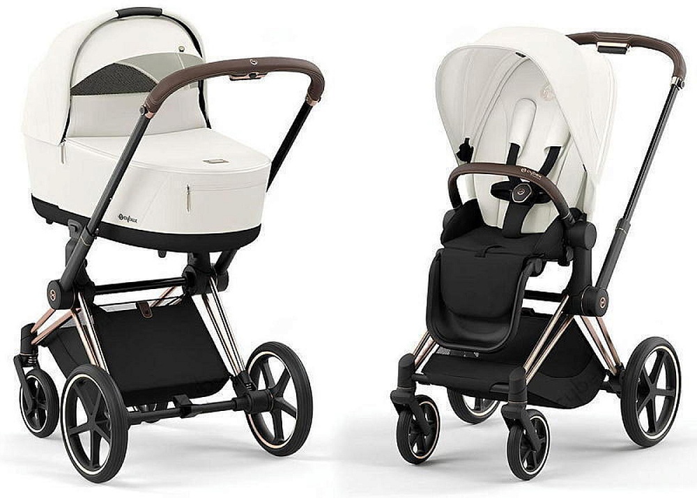 Cybex Priam IV 3 в 1 (Сайбекс Приам 4) является самым полным комплектом немецкой гибридной универсальной премиальной коляски, который удовлетворит все изысканные потребности с первых дней жизни вашего малыша до достижения им 4-летнего возраста. Данная модель коляски Priam IV имеет шасси модели в расцветке Rosegold (рама розовое золото, бампер и ручка в коричневом оттенке) и упакована в одну коробку, в комплекте также автокресло Cloud G i-Size Magic Black.