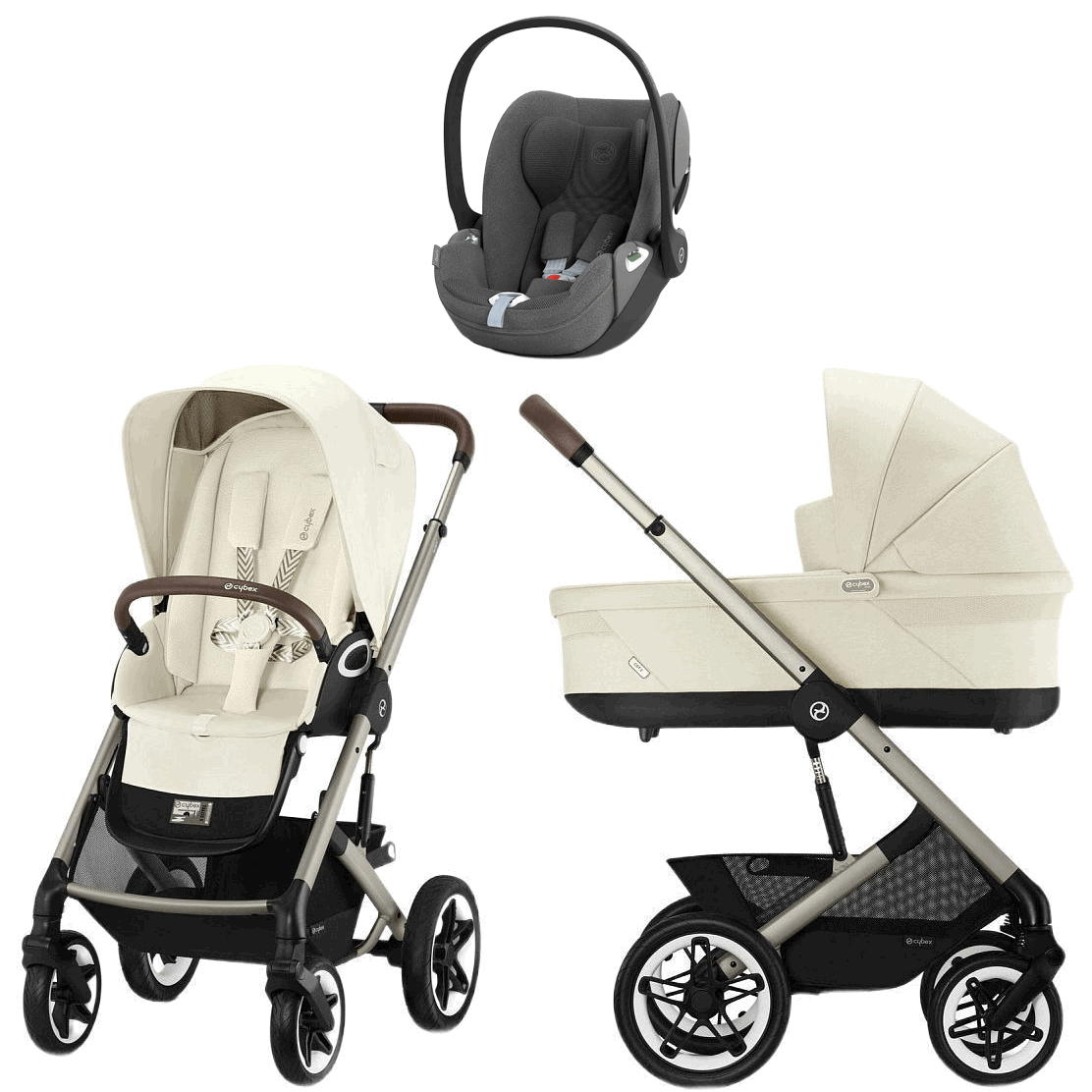 Коляска Cybex Talos S Lux TPE complete Cloud T Mirage Grey Plus 3 в 1 Seashell Beige с дождевиками