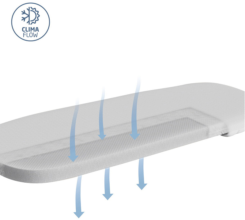 Двусторонний матрас из пеноматериала с эффектом памяти с одной стороны выполнен из мягкого 100% органического хлопка, а с другой — из воздухопроницаемой сетчатой ткани, обеспечит вашему малышу уют в любое время года