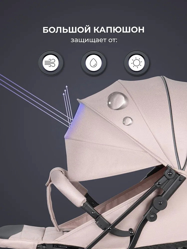 Капюшон может раскрываться до самых ножек малыша, а теплый полог оберегает ребенка от непогоды. Для наблюдения за крохой есть смотровое окошко с клапаном. Секция для проветривания в изголовье, способствует охлаждению воздуха и предотвращать тепловой удар.