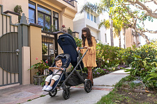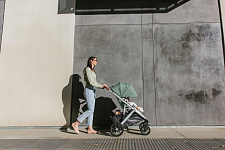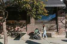 Благодаря мягким шинам и новой пружинной амортизации на всех колесах коляска сохраняет плавный ход во время прогулок независимо от дорожного покрытия и количества детей внутри.