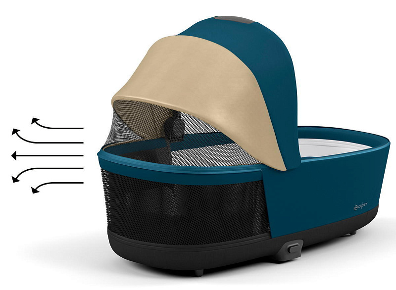 Основным отличием люльки (спального блока) Priam Lux Carry Cot предыдущей модели, является наличие дополнительного кармашка на молнии спереди люльки, а также измененная система установки спального блока на шасси. Люлька устанавливается на адаптеры, которые подходят и для автокресла Cybex. Внутри люльки находится мягкий матрасик, который запоминает положение малыша. Матрас изготовлен из ортопедической пены имеют хороший уровень износостойкости. Его подкладка также изготовлена из 100% хлопка. Всё это гарантирует максимальный комфорт и отличную воздухопроницаемость для вашего ребенка. Люлька (спальный блок) оборудована защитным капюшоном, который может раскладываться и регулироваться в зависимости от требований. При изготовлении люльки использовались безопасные материалы, протестированные в соответствии с самыми высокими стандартами. Для того, чтобы родителям было удобно следить за состоянием ребенка, в капюшоне проделано специальное окошко. Кроме того, это окошко выполняет функцию вентиляции при прогулках в жаркое время года, при желании окошко можно закрыть.