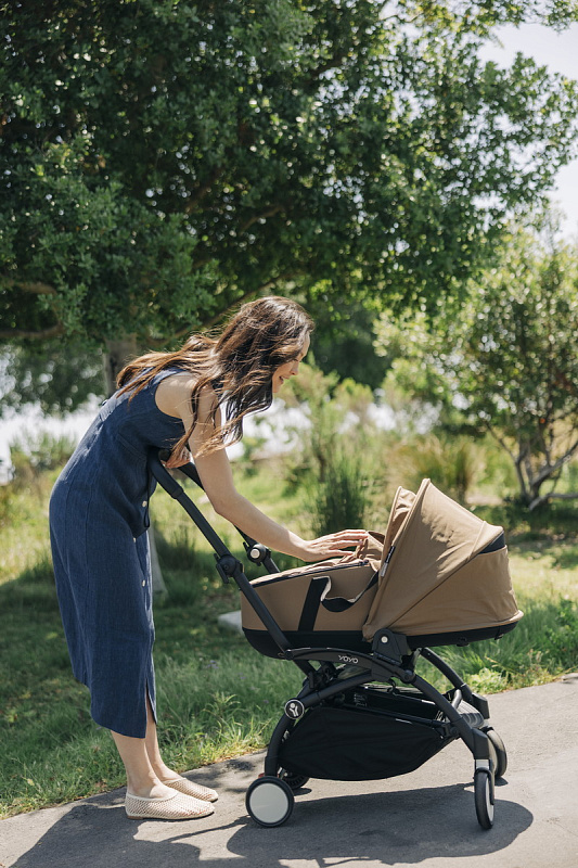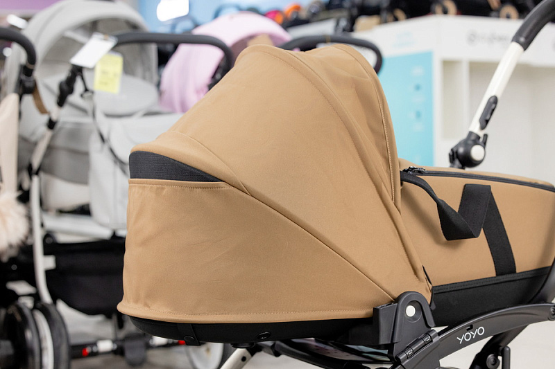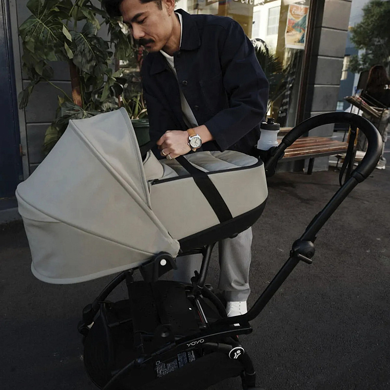 - Люлька для новорожденного легко крепится к раме YOYO3 и может переноситься вручную.