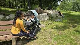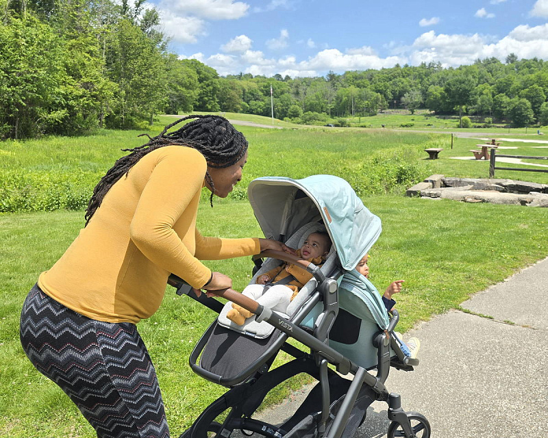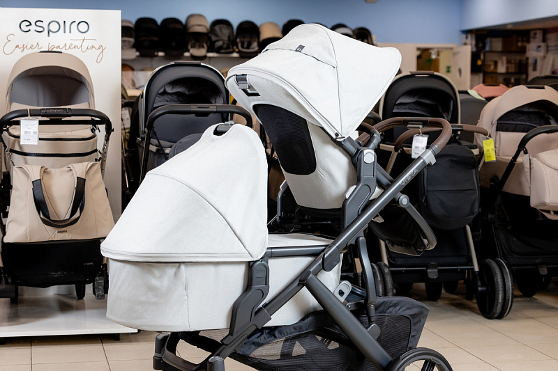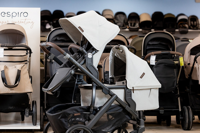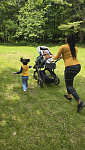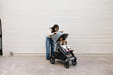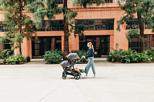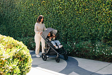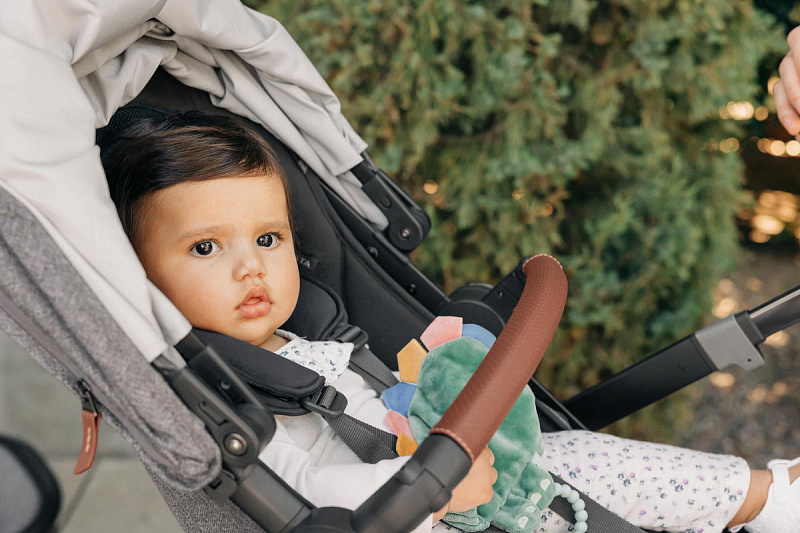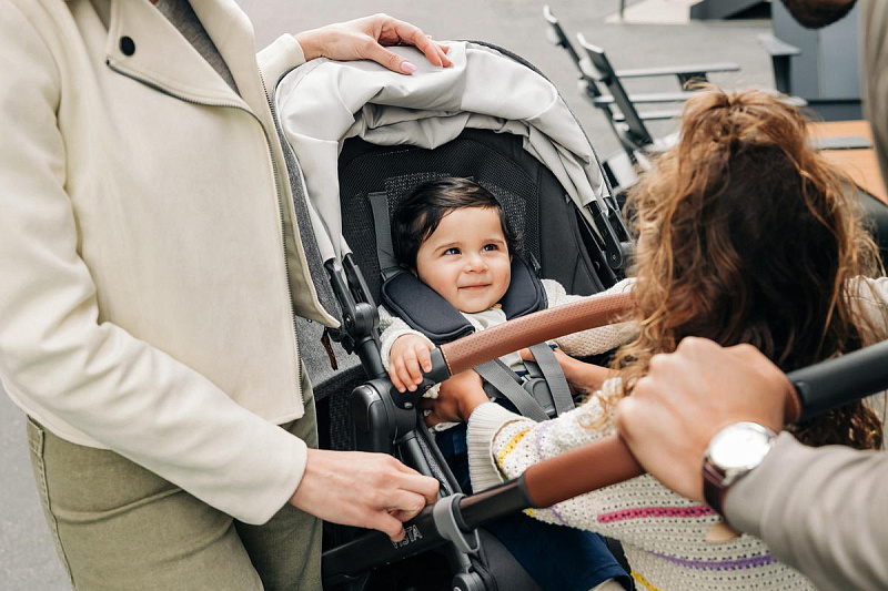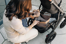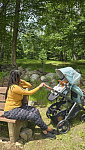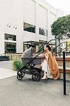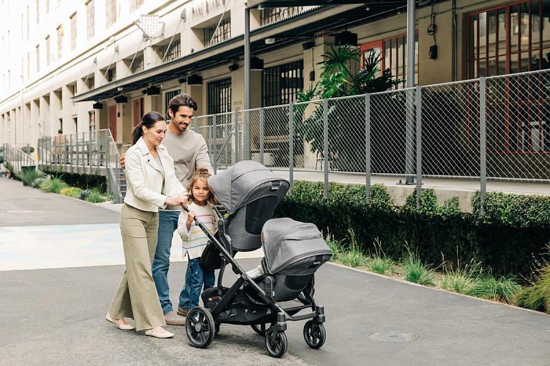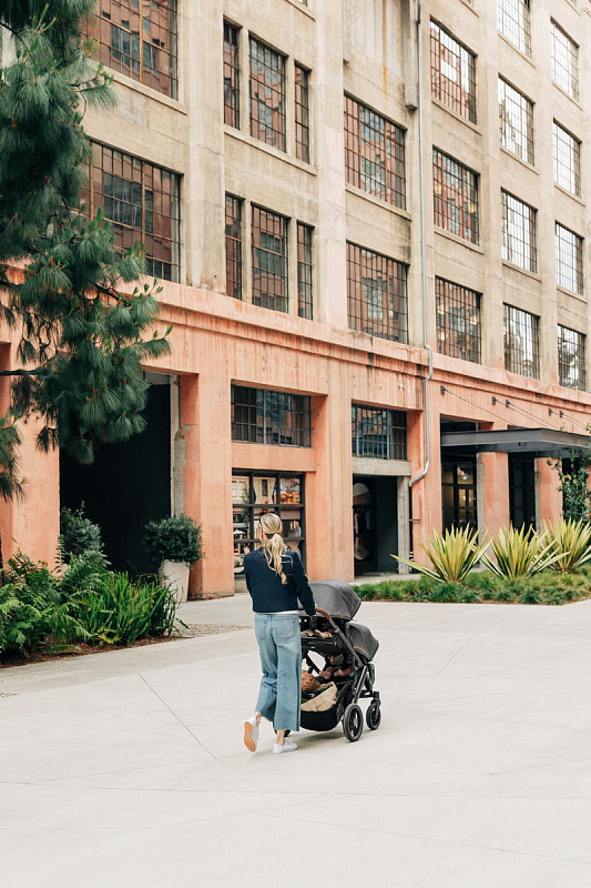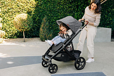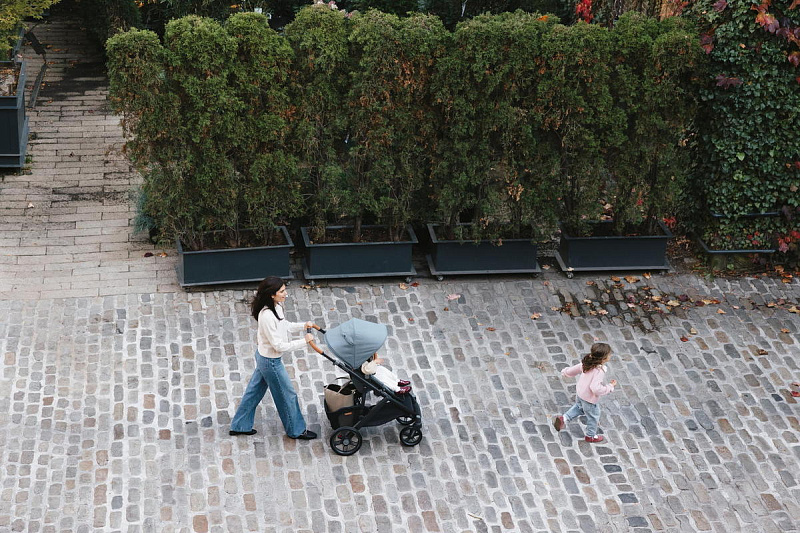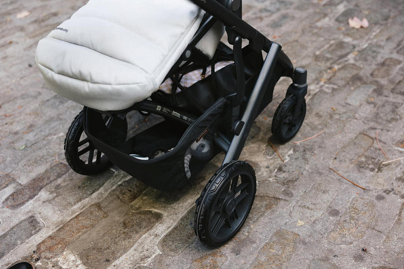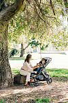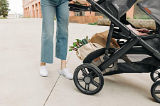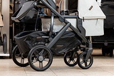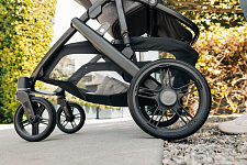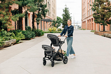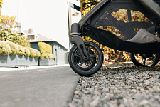 Благодаря мягким шинам и новой пружинной амортизации на всех колесах коляска сохраняет плавный ход во время прогулок независимо от дорожного покрытия и количества детей внутри.