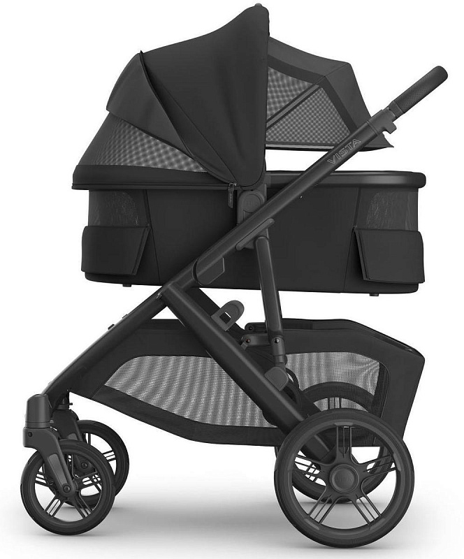 В комплекте: шасси коляски VISTA V3, люлька, прогулочный блок, бампер для прогулочного блока, дождевик и москитная сетка для прогулочного блока, дождевик и москитная сетка для люльки, сезонный вкладыш для прогулочного блока, чехол для хранения люльки, верхний и нижний адаптеры.