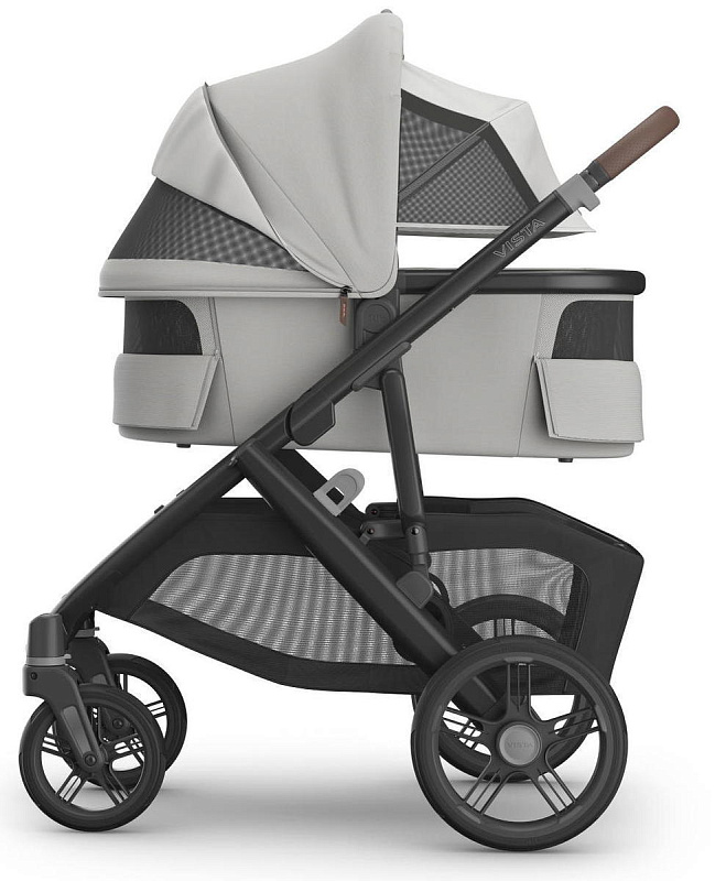В комплекте: шасси коляски VISTA V3, люлька, прогулочный блок, бампер для прогулочного блока, дождевик и москитная сетка для прогулочного блока, дождевик и москитная сетка для люльки, сезонный вкладыш для прогулочного блока, чехол для хранения люльки, верхний и нижний адаптеры.
