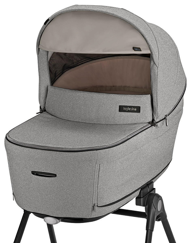 Регулируемый наклон основания люльки обеспечивает удобное положение новорожденному после кормления и позволяет наблюдать за окружающим миром во время бодрствования. Накидка на двух молниях обеспечивает оперативный доступ к малышу.