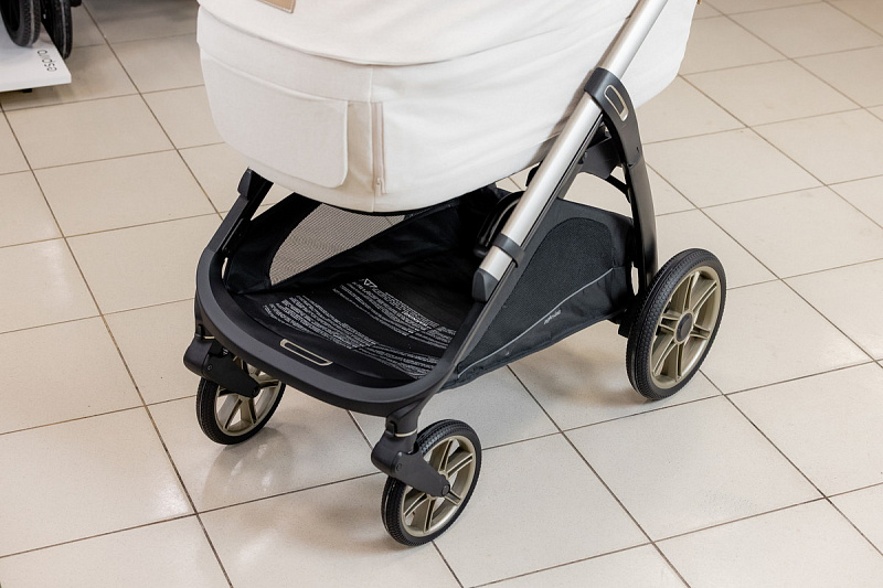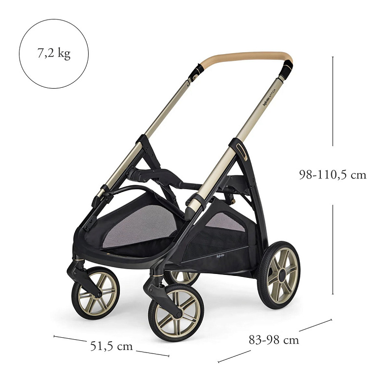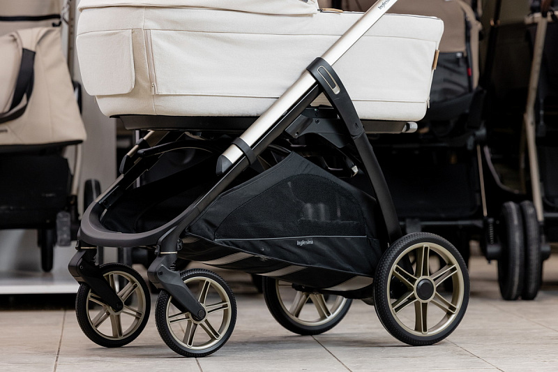 Inglesina Aptica Element— удивительное сочетание легкости с функциями кроссовера. Вы сможете совмещать прогулки городу с поездками на природу: колеса из полиуретана плавно преодолевают любые препятствия. Узкое маневренное шасси шириной всего 51.5 см весит 7.2 кг, вес коляски с прогулочным блоком - 10.4 кг.
