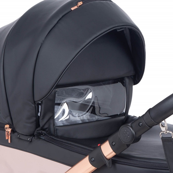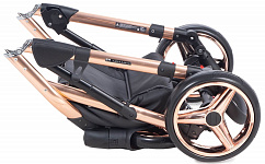 Роскошная модель коляски, которая отличается не только повышенной комфортабельностью, но и необычным внешним видом. Первое, что бросается в глаза при взгляде на нее – это основа люльки, выполненная в оригинальном стиле. Металлизированная отделка, украшающая раму, присутствует и на ободах колес. Эксклюзивный дизайн люльки и элегантный подбор тканей. Шасси оснащено новым амортизатором с полной блокировкой. Коляской легко управлять на любой поверхности, сохраняя плавность ее передвижения. Капюшон люльки и прогулочного сидения имеют дополнительную вентиляцию, которую можно открыть по мере необходимости. Накидка на люльку оборудована высоким бортиком со смотровым окошком, благодаря которому можно наблюдать за ребенком. Стиль коляски подчеркивают современные полиуретановые колеса, не требующие обслуживания и накачивания. Модель оснащена кокосовым матрасиком.
