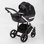 Детская коляска Adamex Cortina Special Edition 2 в 1 CT-401 (ЧЕРН+ЧЕРН.КОЖА+СЕРЕБР.ОТДЕЛКА+СЕРЕБР.РАМА)