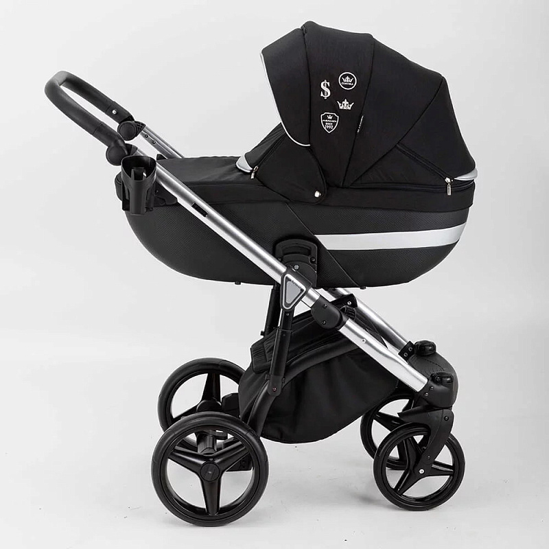 Детская коляска Adamex Cortina Special Edition 3 в 1 CT-401 (ЧЕРН+ЧЕРН.КОЖА+СЕРЕБР.ОТДЕЛКА+СЕРЕБР.РАМА)