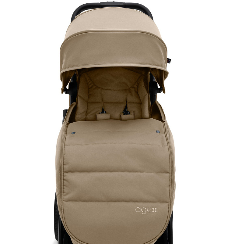 Глубокий капюшон коляски Agex Mini All Road для лучшей защиты от солнца, ветра и дождя. Материал также обладает солнцезащитным фильтром UPF 50+, обеспечивая дополнительную безопасность для вашего малыша.