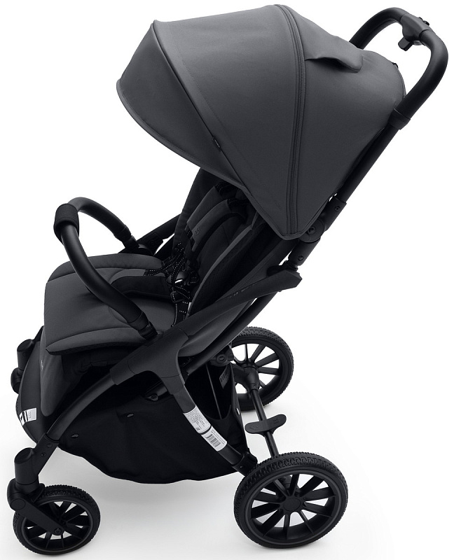 Подножка изготовлена из материала, который легко чистить, ее можно регулировать по высоте, и она имеет отделку из светоотражающей ленты для безопасных прогулок ночью