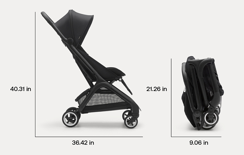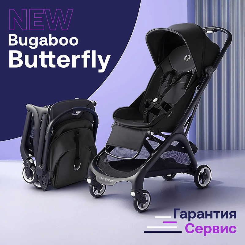Коляска складывается и раскладывается за секунду одной рукой, чтобы другой можно было нести ребенка. В сложенном состоянии Bugaboo Butterfly помещается на верхние полки для ручной клади большинства авиакомпаний и поездов (совместима с требованиями IATA). Для удобства переноски предусмотрен плечевой ремень.