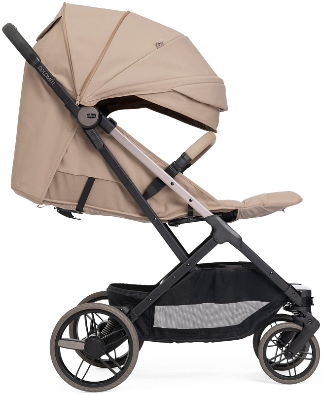 В комплект входят чехол для ног и дождевик - всё необходимое для прогулок в любое время года. Элегантные мягкие ткани, премиальные детали отделки, стильные цветные диски и резиновые шины подчеркивают современный дизайн Chicco Dolomiti.