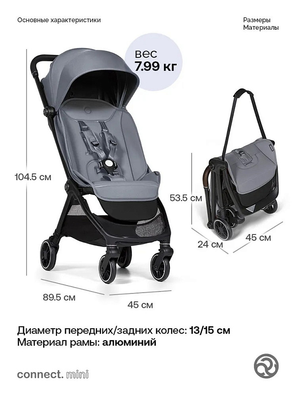 Connect Mini предлагает всё, что ожидается от колясок премиум-класса, которые можно разместить в ручной клади, – и, кроме того, она предлагает несколько эксклюзивных функций, недоступных ни одному другому бренду.