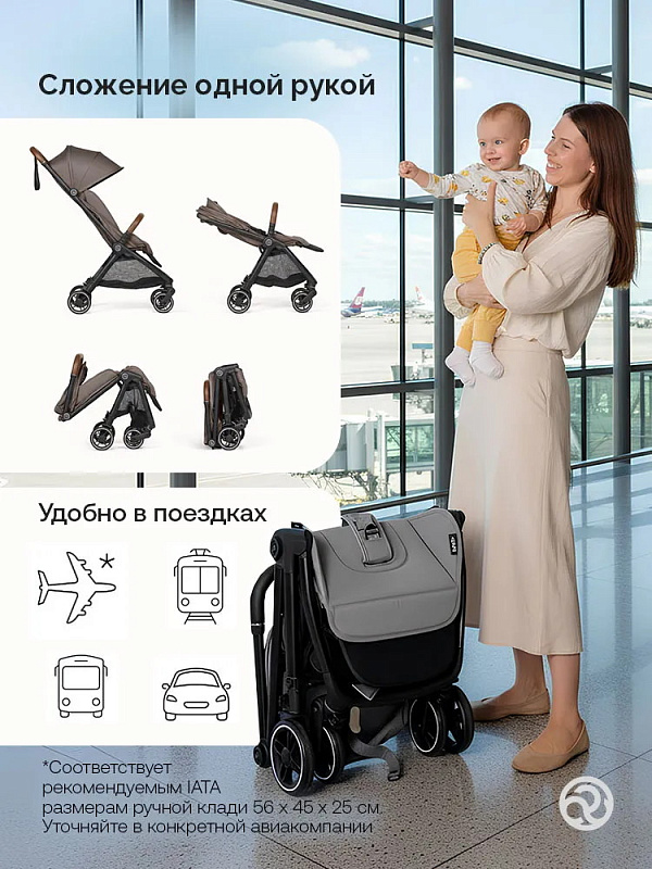 - Уникальная коляска размера ручной клади с выдвижной подставкой для ног — коляска растет вместе с ребенком;