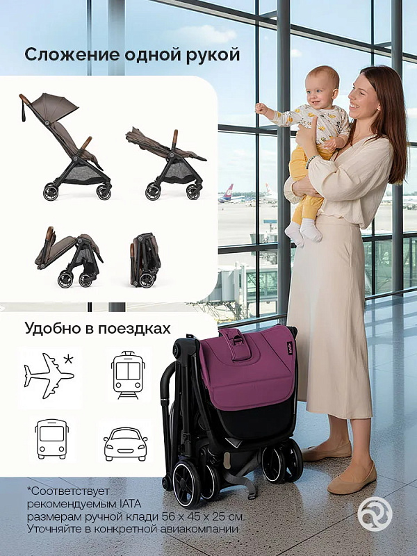 - Уникальная коляска размера ручной клади с выдвижной подставкой для ног — коляска растет вместе с ребенком;