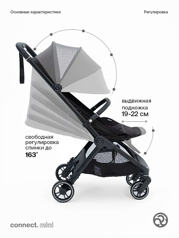 Connect Mini предлагает всё, что ожидается от колясок премиум-класса, которые можно разместить в ручной клади, – и, кроме того, она предлагает несколько эксклюзивных функций, недоступных ни одному другому бренду.