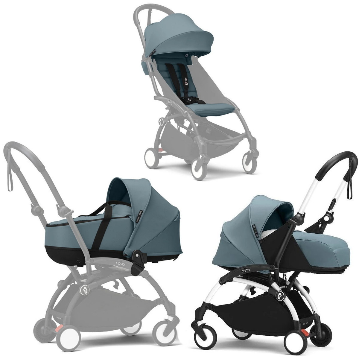Коляска Stokke YOYO3 Newborn Shell - Newborn Pack рама белая White 2 в 1 Aqua