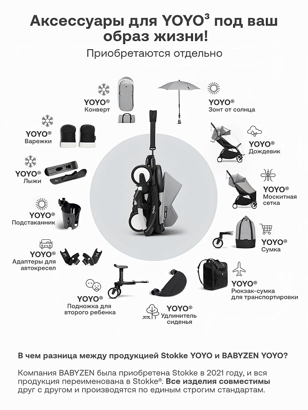 Компания BABYZEN была приобретена Stokke в 2021 году, и вся продукция переименована в Stokke®. Все изделия совместимы друг с другом и производятся по единым строгим стандартам.