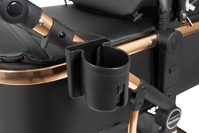 Коляска выполнена из экокожи Premium-класса с водоотталкивающей пропиткой, которая не только придает изделию изысканный вид, но и обеспечивает долговечность и простоту в уходе.