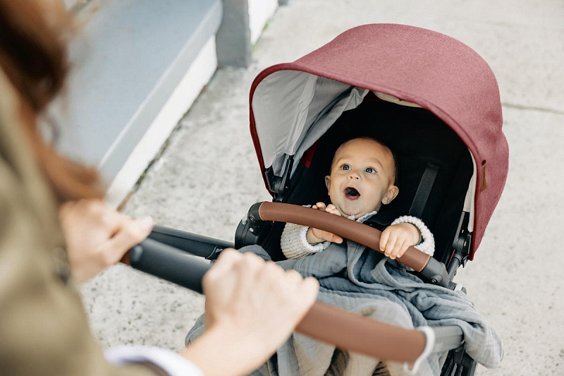 Регулируемая телескопическая ручка. Ручка регулируется по высоте для удобства использования родителями любого роста. Накладка на ручку выполнена из высококачественной натуральной кожи, поэтому обеспечивает надежный хват и легкий уход.