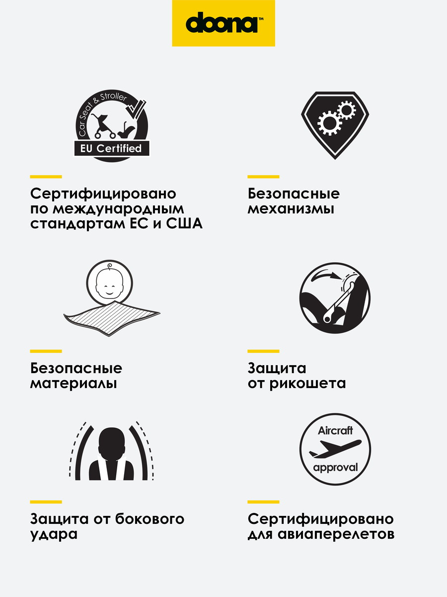 - К слову, стоит понимать, что Doona Plus полностью сохраняет эксплуатационные характеристики автокресла: защищает ребенка в случае аварийной ситуации, гарантирует комфорт малышу благодаря анатомической форме ложа, есть фиксирующие ремни безопасности, каркас выполнен из ударопрочного пластика.