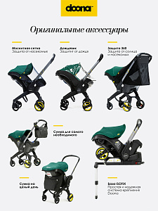 - Помимо вкладыша, руководствуясь идеей эргономичности и комфорта, компания разработала широкий набор аксессуаров для Doona Plus, которые сделают ее эксплуатацию еще более простой и комфортной.