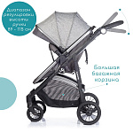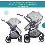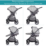 Коляска имеет три уровня наклона прогулочного блока-трансформера, плавную регулировку наклона спинки ремнями, классическую пружинную амортизацию, 5-точечные ремни безопасности, съёмный откидной поручень с паховым ремнём и возможность установки сиденья в любом направлении движения.